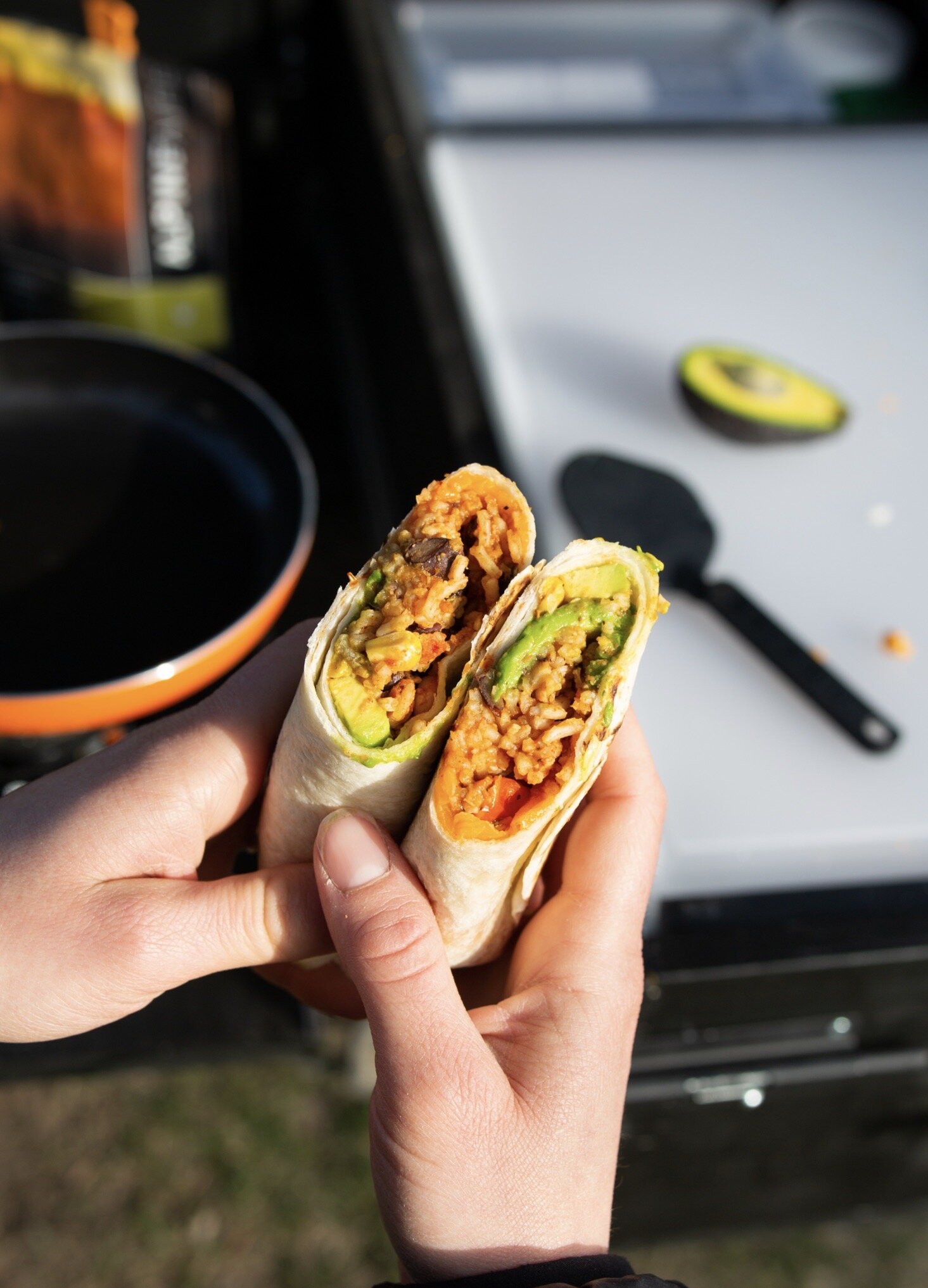 Using a store-bought dehydrated meal and a few simple fresh ingredients you can create super easy and delicious camp burritos in no time!