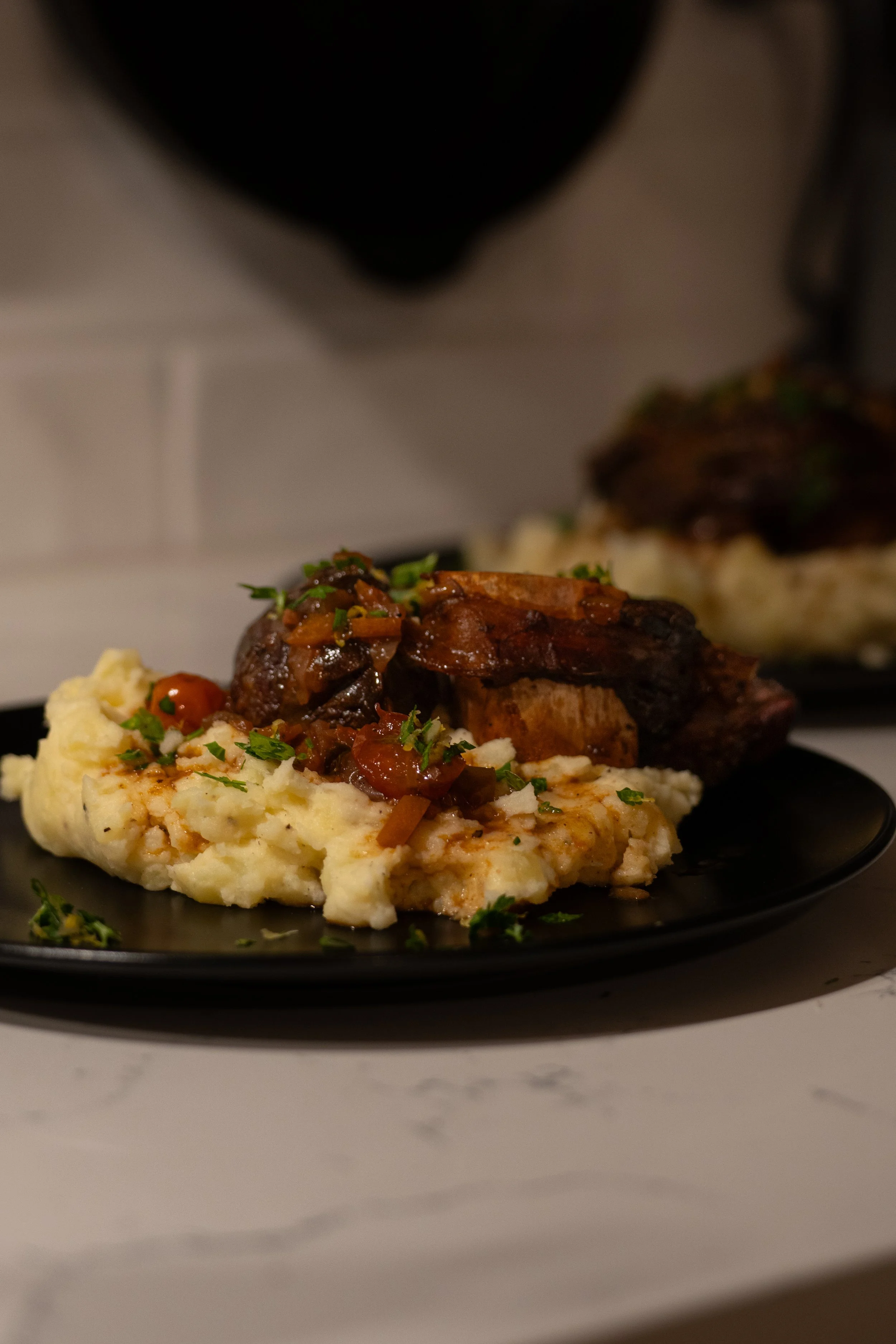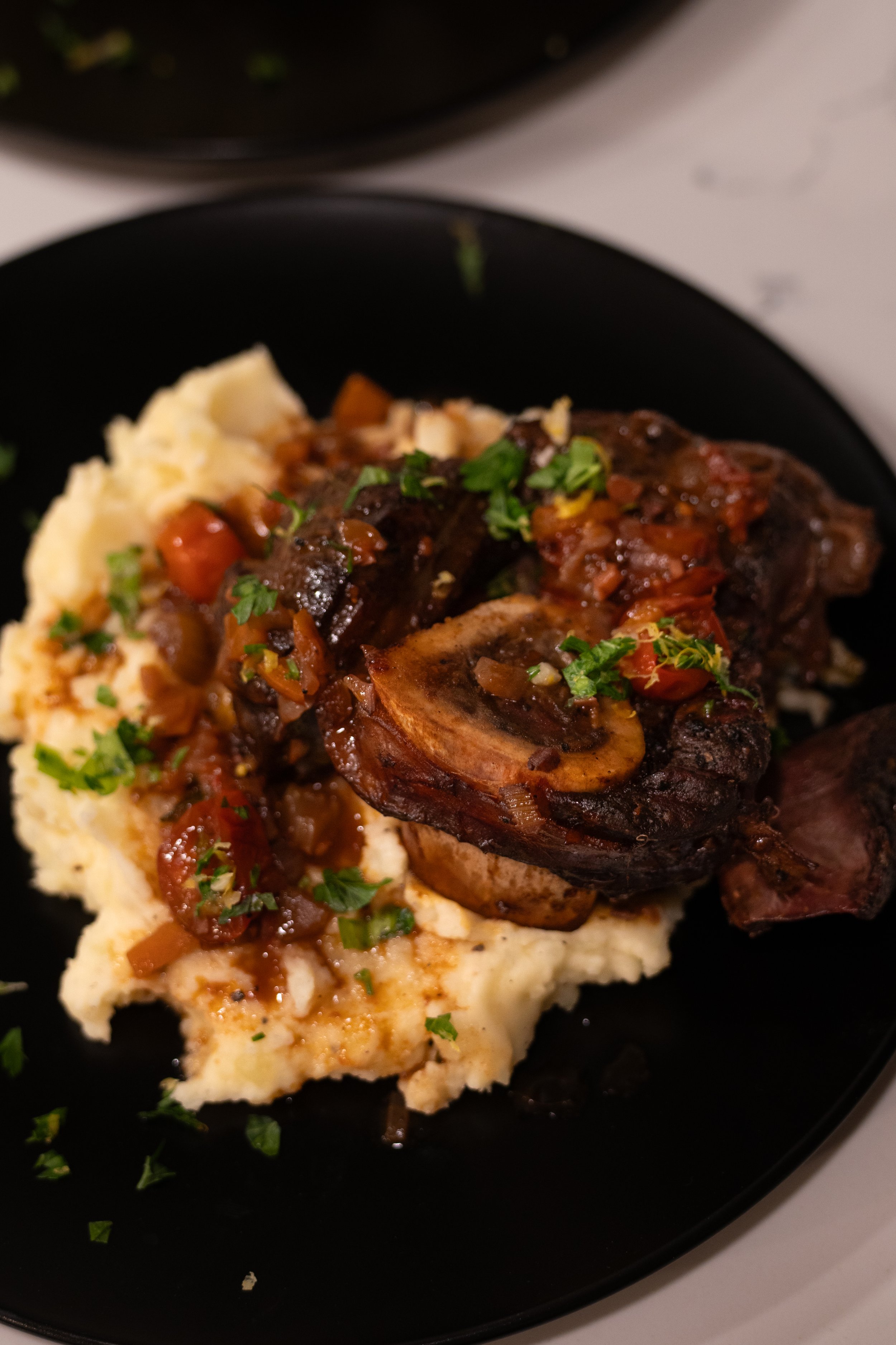 - Serve osso buco over mashed potatoes and top with the fresh gremolata.